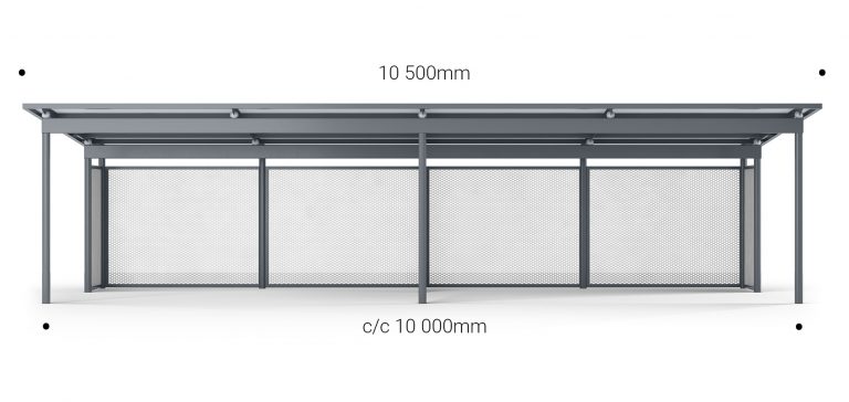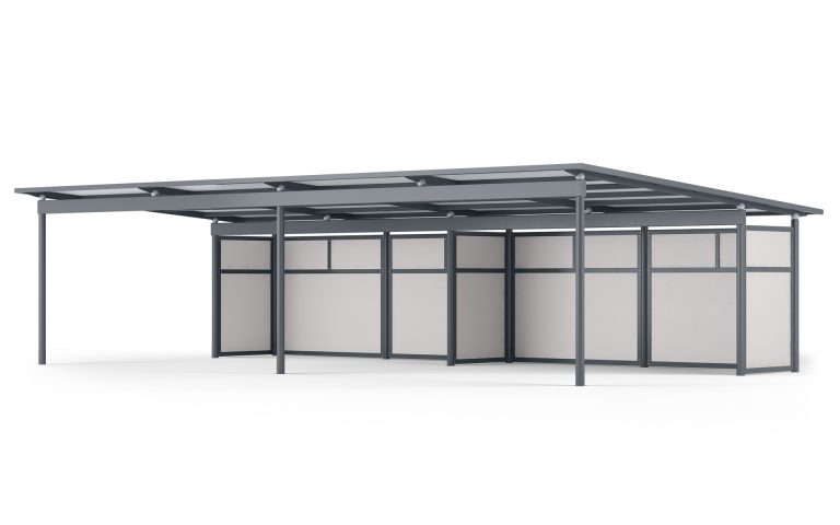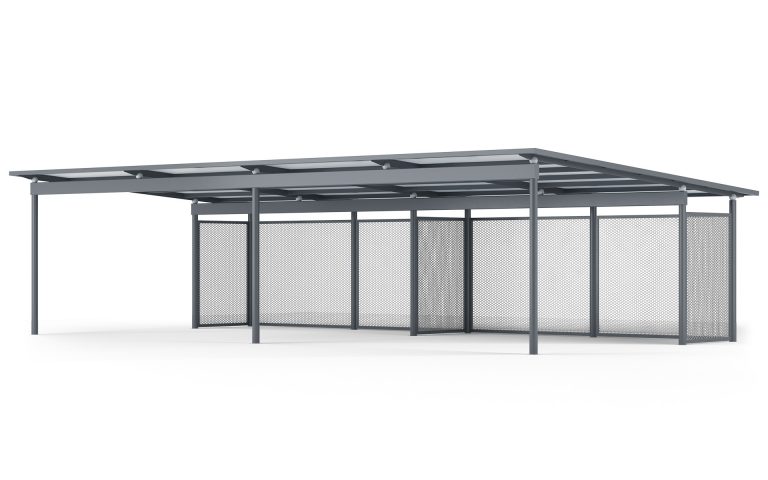 Autone strekkmetall med veggseksjoner av lett transparent metall gir et moderne og luftig formspråk samtidig som det beskytter godt mot vær og vind. LED-belysning følger med som standard.