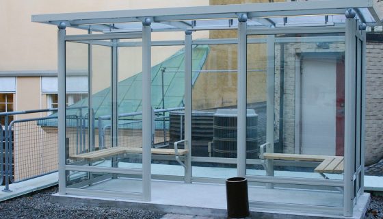 Med spesialbygde røykerom for bedrifter og offentlige miljøer oppfyller den kravet til et røykfritt miljø, samtidig som røykerne får et trivelig sted å være, i ly for vær og vind. For at røykerommene skal passe inn i forskjellige miljøer, har vi designet ulike modeller som deretter kan tilpasses det konkrete behovet.